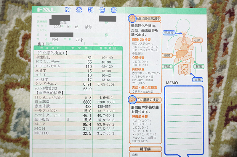 アレルギーのクスリを貰いに行った便に健診結果を聞いてきました。
