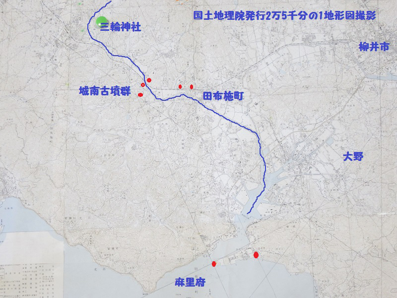 青い線で引いた田布施川のすぐそばです。